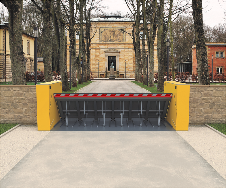 - ROAD BLOCKER SURFACE – מנגנון שמותקן בגובה פני השטח באמצעות עוגני כימיה מיוחדים, ללא חפירת קרקע, אידיאלי למקומות בהם יש תשתיות תת-קרקעיות. המערכת קומפקטית עם בקר מובנה ומשאבה ידרואלית משולבת. אורכים זמינים: 3.5, 4.5 ו-5.5 מטרים.